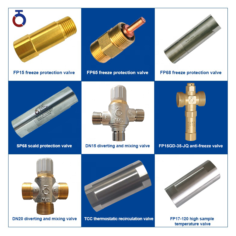 北京温宁温控设备有限公司研制的的防冻阀是属于无源式的,就是不需要用电或者其他动力,就可以独立工作。防冻阀的核心器件是感温器,通过机械式运作控制阀门。当环境温度低于阀门的设定温度时,阀门会自动开启,在低温条件下,把接近冰点的水排出;当水温恢复时,阀门又会自动关闭。另外,智能主要是指阀门可以随着温度来调节排水流量,温度降低,流量会自动增大。