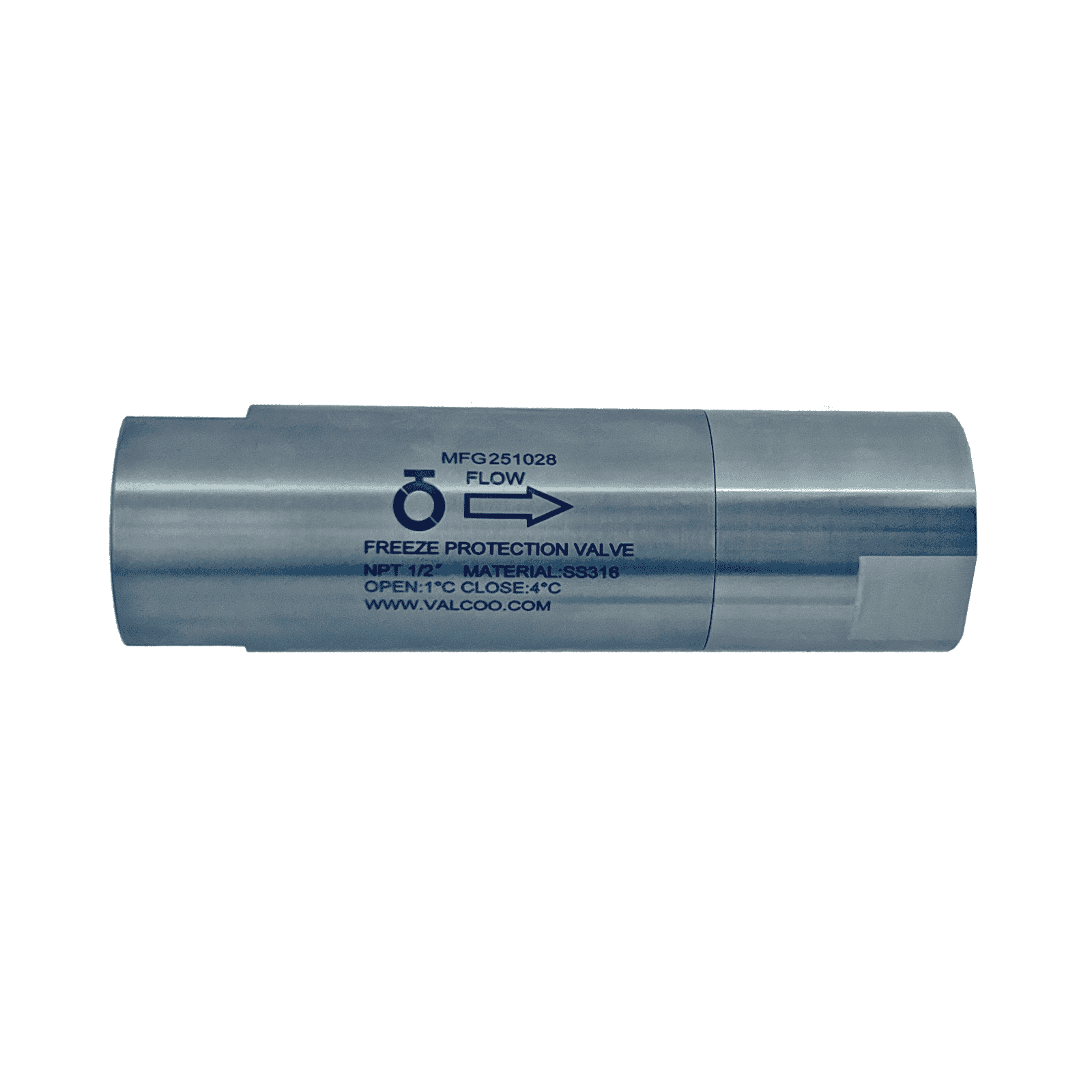 防冻阀(产品)最早起源于美国。由于安装简便,维护使用非常安全,在国外已经有了广泛应用。而在我国了解并使用此项技术的企业还不是很多。 防冻原理:当系统温度低于设置温度时如4℃,阀门自动打开,(至1℃时阀门全开)排出即将冻结的冷水。当水温高于如4℃时,阀门自动关闭,周而复始,达到防冻效果。 衡量防冻阀性能的几个重要指标即打开/关闭温度、最高工作压力、最高工作温度和流量系数